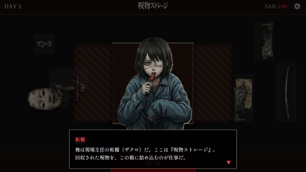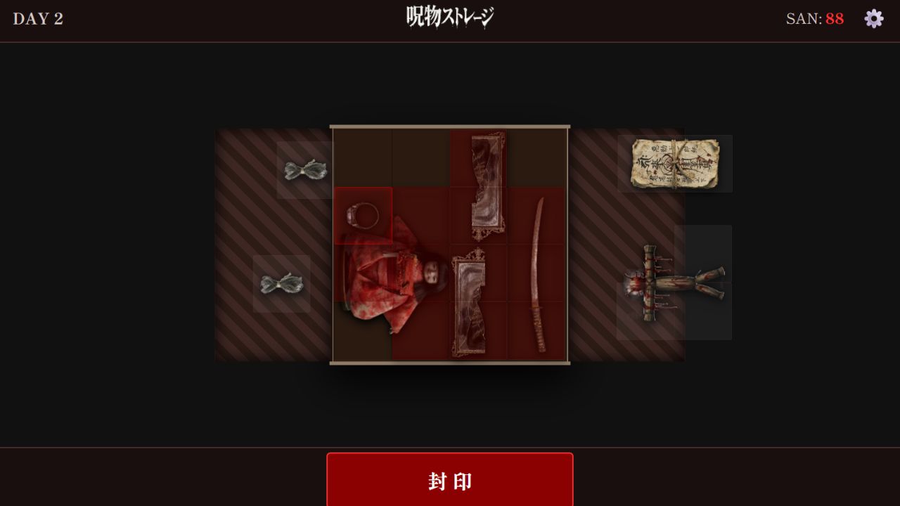 箱に入りきらず弾き出された呪物は、あなたの精神(SAN値)を削ります。 パズルを解き、被害を最小限に抑えながら、20日間の業務を生き延びてください。